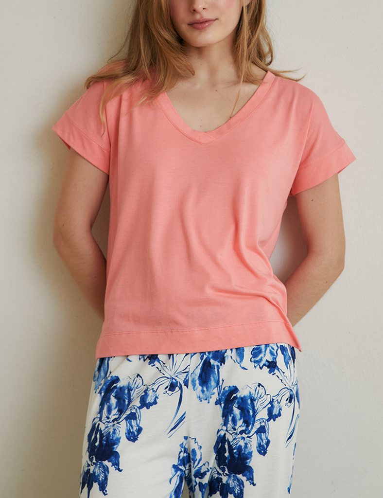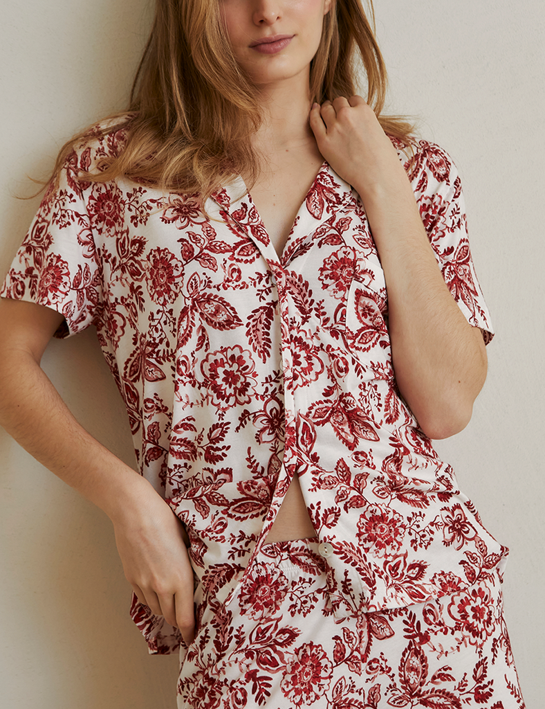 Otra excelente opción es el PJ Boyfriend Aria Blooming Magnolia que está diseñado para estar 100% cómoda y con estilo. La camisa se caracteriza por tener un corte en "A" y un fit ligero mientras que el short tiene el tiro a la cintura con un cómodo elástico y un entalle relajado. No podemos dejar de mencionar el hermoso print de flores que lo hace único. Este PJ está hecho en su totalidad de Algodón Pima, uno de nuestros mejores materiales.