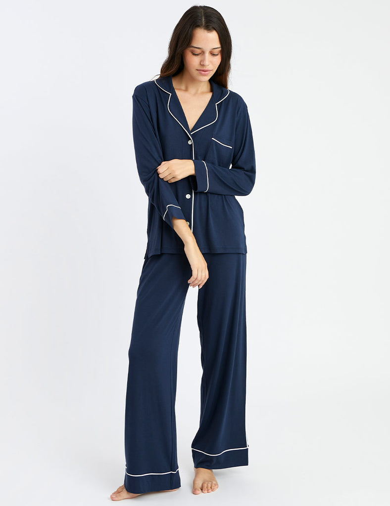 El favorito de todos los tiempos; nuestro PJ Boyfriend es una pieza contemporánea e indispensable - ahora en la color Indigo. Se caracteriza por la suavidad de la mezcla del Algodón Pima y el Modal para un tacto suave sobre la piel. Luxury Finish - Lavado especial que le damos a nuestras telas para un mejor tacto sobre la piel y sutil caída que te dará una sensación única.