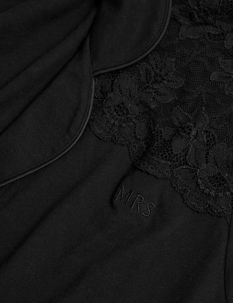 ¡Un nuevo modelo en nuestra colección! El PJ Boyfriend Vera Corto Bridal Black se caracteriza por una sutil caída que acentúa la figura. Resalta por el encaje en los hombros, mangas y short. Cuenta con un fit holgado que ofrece mayor comodidad. ¿Buscas completar el look? Puedes combinarlo con nuestra Bata Eva Bridal y personalizarlo a tu manera con un Monogram. La colección Bridal está diseñada para acompañarte en los momentos más especiales.