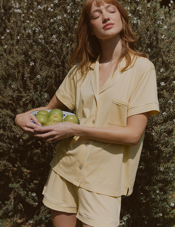 Clásico, simple y elegante. Nuestro PJ Boyfriend Corto Lime resalta la suavidad de la mezcla del Algodón Pima y el Modal para un tacto suave sobre la piel. La mezcla de ambas fibras y el proceso de lavado especial que le damos resulta en la más alta calidad de esta prenda, y asegura su durabilidad. Luxury Finish - Lavado especial que le damos a nuestras telas para un mejor tacto sobre la piel y sutil caída que te dará una sensación única.