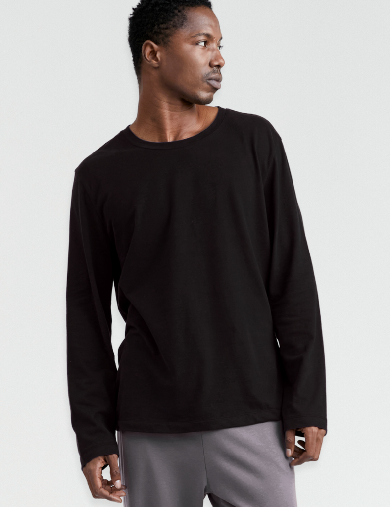 El Crew Neck T-Shirt Black es un elemento básico y cómodo que no debe faltar en su armario. Confeccionado en Brushed Jersey, ofrece un tacto ultrasuave gracias a su acabado tipo piel de durazno, ideal para los días más fríos.